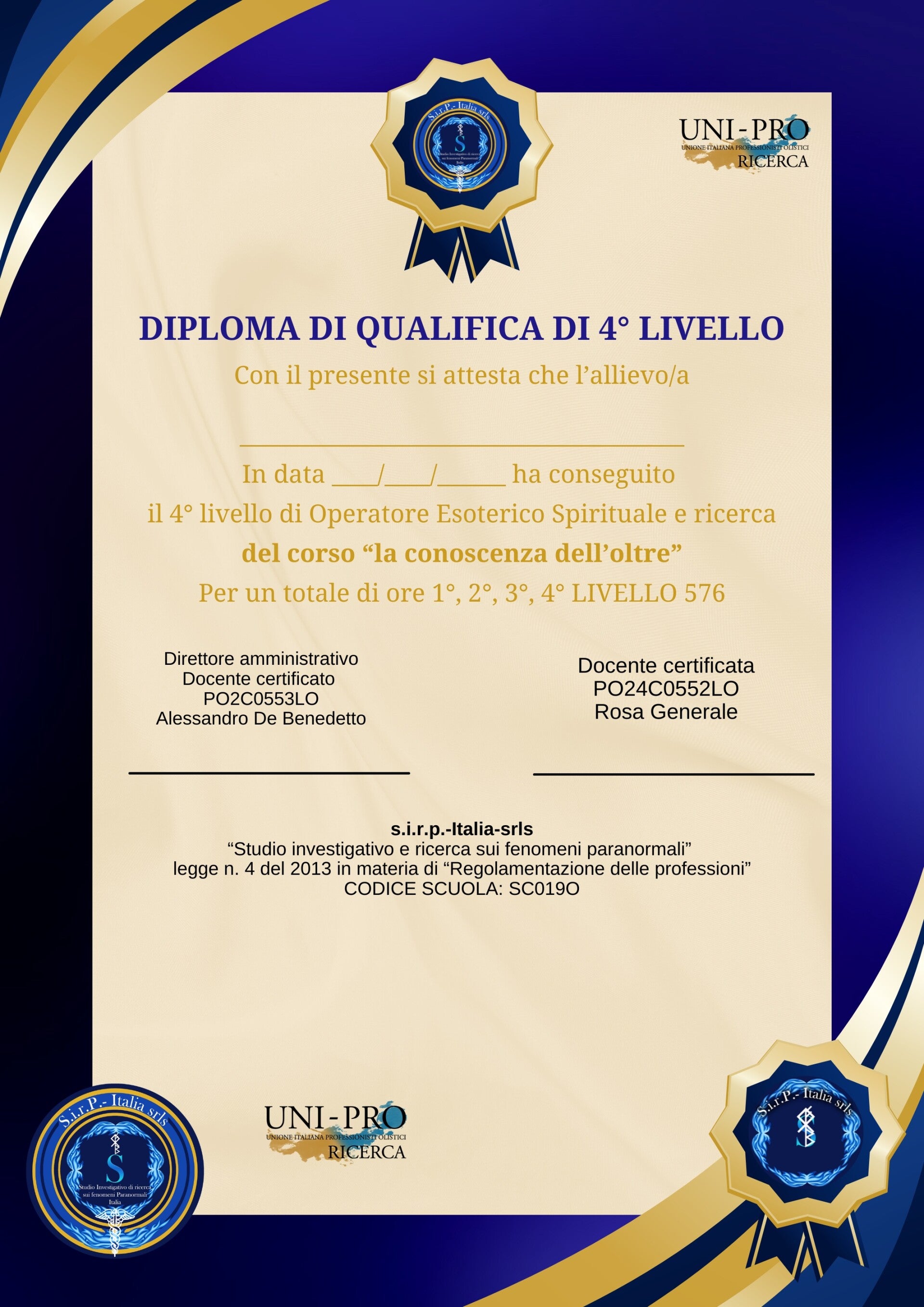 DIPLOMI RILASCIATI DOPO IL NOSTRO CORSO-SEMINARI VALIDO SU TUTTO IL TERRITORIO NAZIONALE